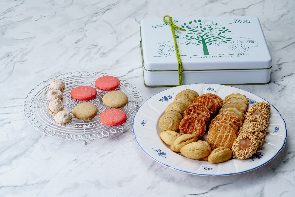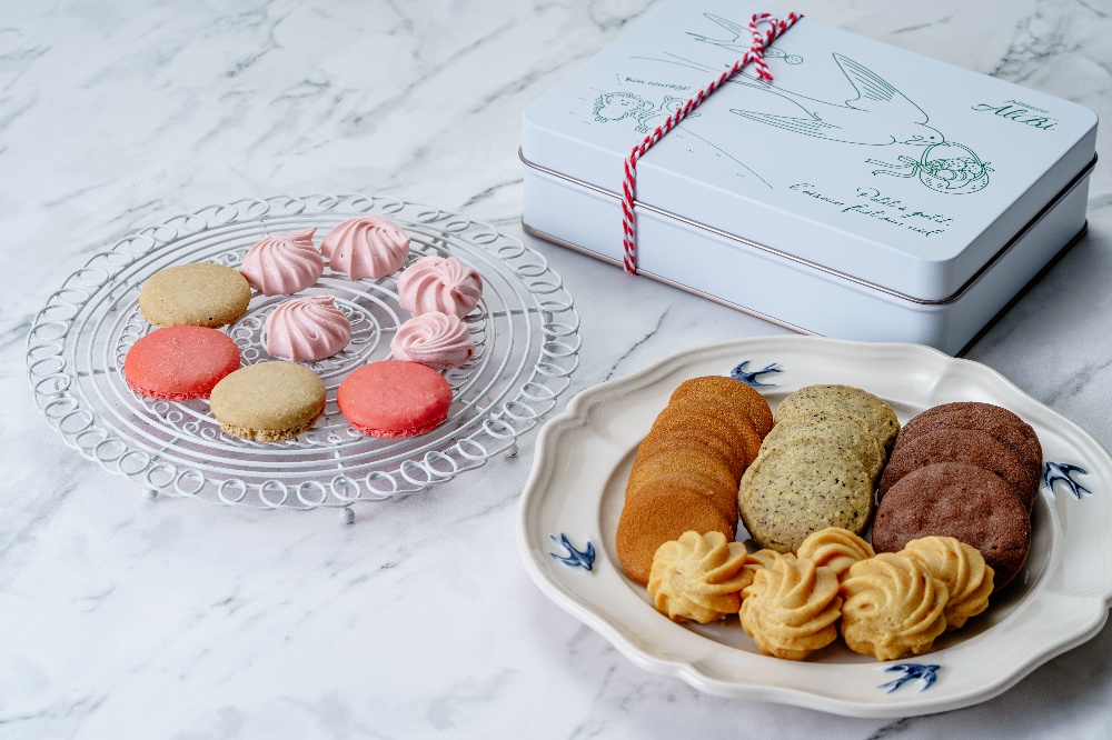 クッキーやメレンゲ菓子を詰め合わせました。アルビ缶より少し小さめサイズです。贈り物にもおすすめです。